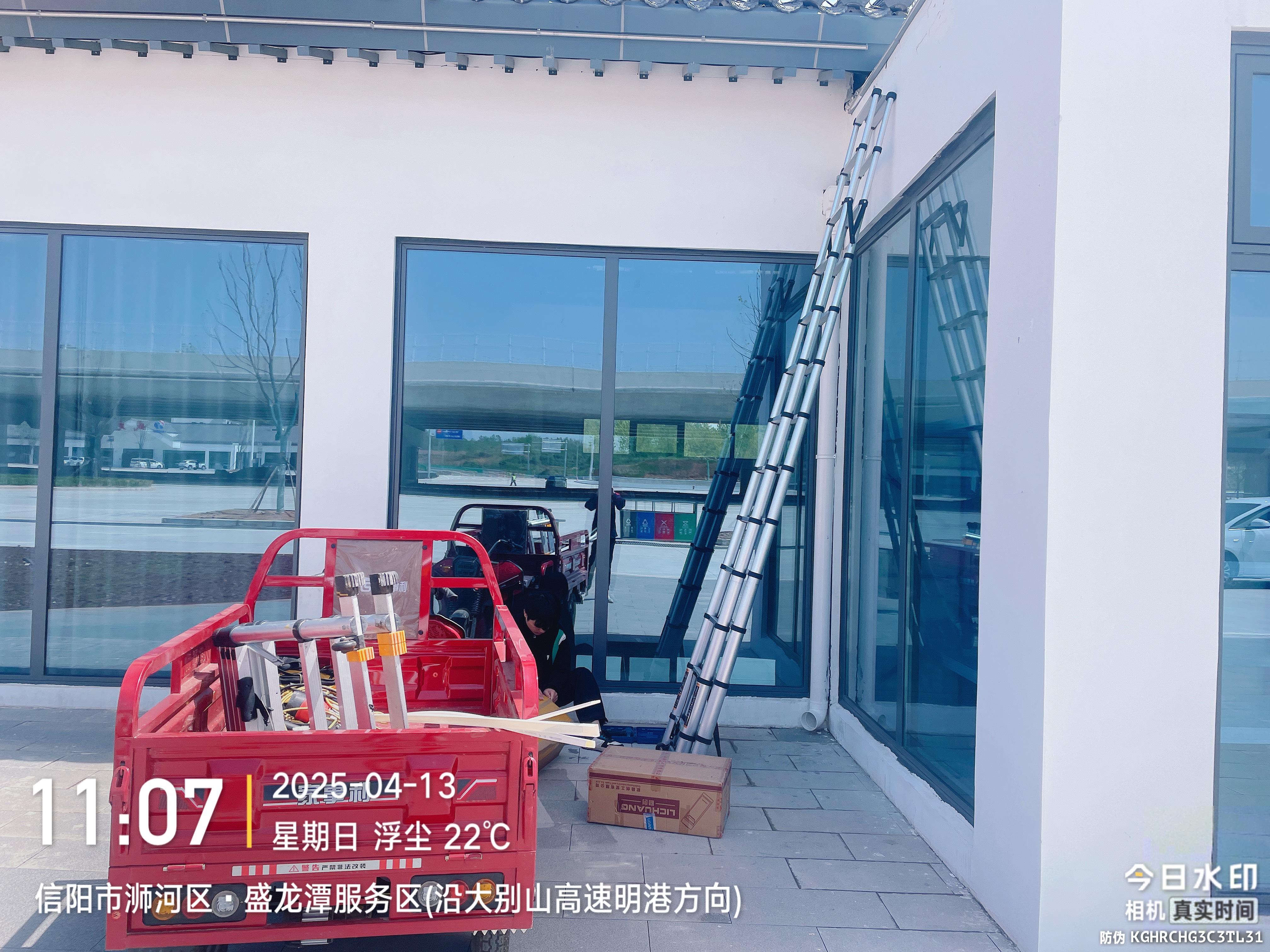2025年4月13日,河南交投集團信陽段服務區(qū)(盛龍?zhí)斗諈^(qū))司機之家監(jiān)控項目安裝現(xiàn)場!